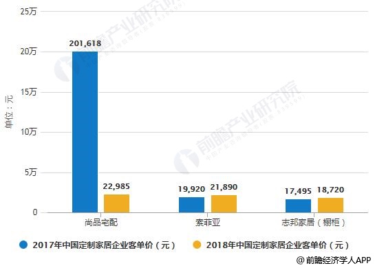 2017-2018年中国定制家居企业客单价统计情况