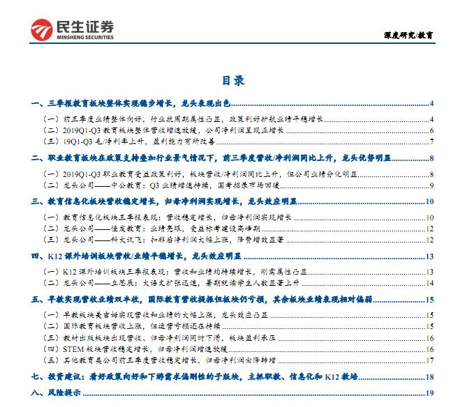 民生证券-教育行业2019年前三季度财报综述:教育板块业绩整体向好,行业抗周期属性凸显.pdf