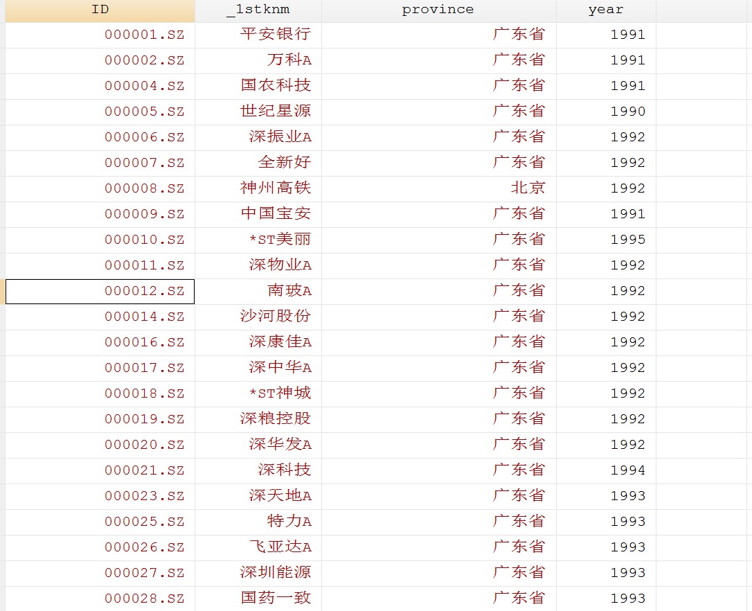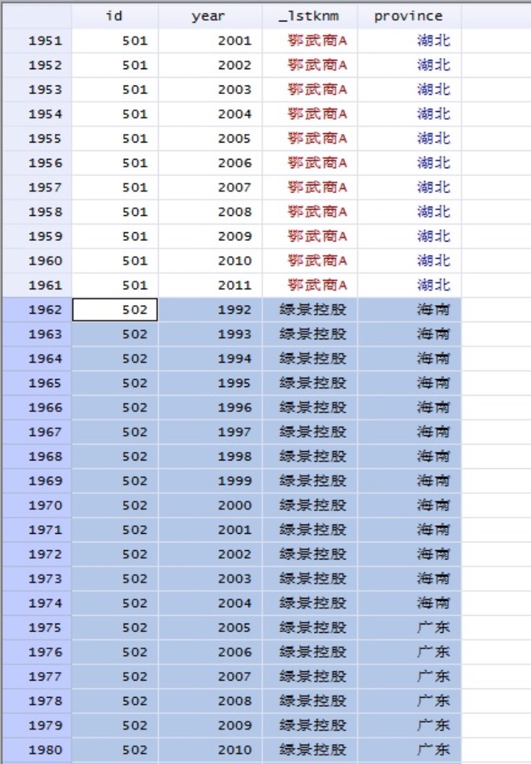 类似这样,这里的year指的是每一年上市公司的情况