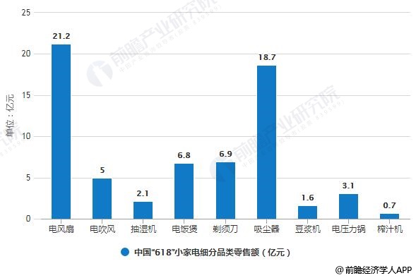 2019年中国“618”小家电细分品类零售额统计及增长情况