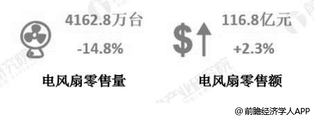 根据中怡康推总数据显示,2018年电风扇市场零售量为4162.8万台,同比下降14.8%,销售额为116.8亿元,同比增长2.3%,出现了“量降额增”现象。