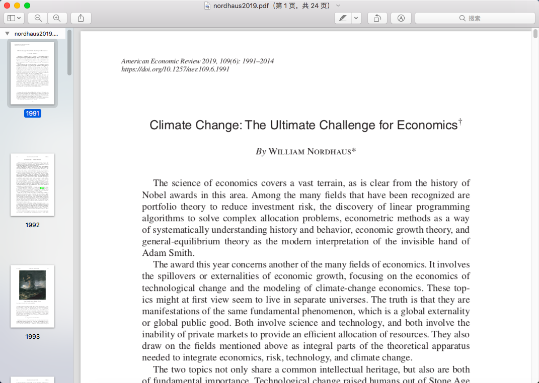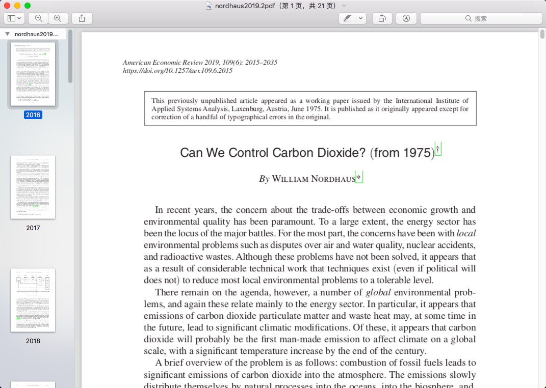 分享2018年诺贝尔经济学奖获得者威廉诺德豪斯的两篇2019年发表在美国经济评论的论文