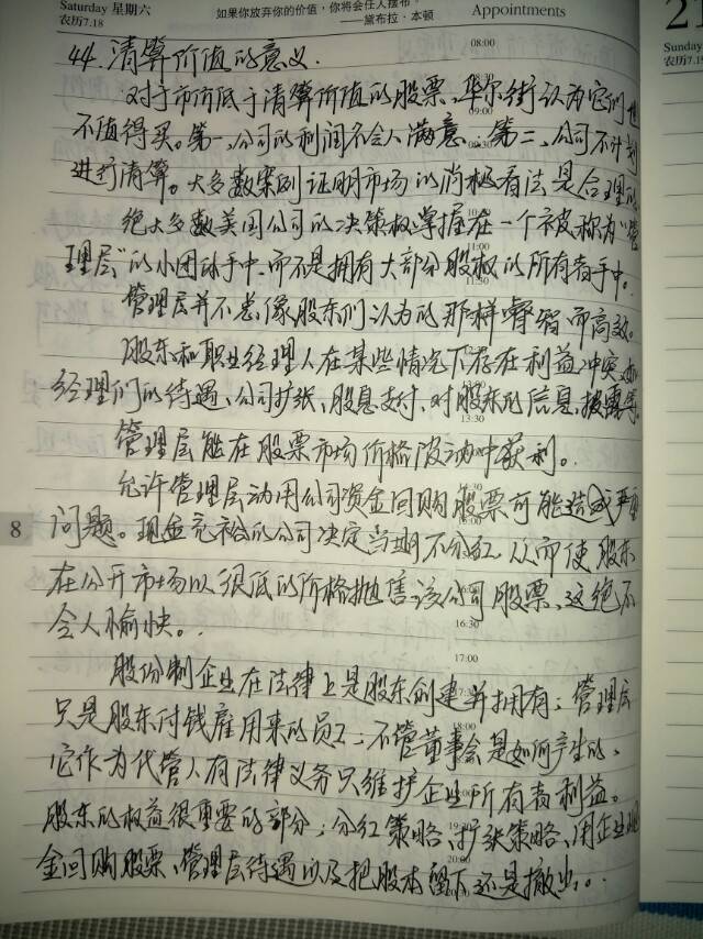 在投资领域,明显捡便宜的事多是不能办的,譬如买清算价值高于市价的公司股票。因为多数这种情况发展下去糟糕的多。另外,代理人问题也是很棘手的考量。代理人更了解企业,更可能引导所有者沿着管理层的思路前进。那么,所有者都是这样的劣势吗?答案肯定不是。因为所有者手中还有权益最终使用的表决权。