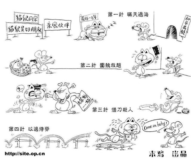 1.抢婚 有婚家女富男贫,男家恐其赖婚也,择日率男抢女,误背小姨以出。 女家追呼曰:“抢差了。” 小姨在背上曰:“莫听他,不差不差,快走!” ——《笑府》 2.豆腐 一人留客饭,只豆腐一味,自言豆腐是我性命,觉他味不及也。 异日至客家,客记其食性所好,乃于鱼肉中各和豆腐,其人择鱼肉大啖。 客问曰:“兄尝云豆腐是性命,今日如何不吃?” 答曰:“见了鱼肉,性命都不要了。” ——《笑府》 3.巧嘴媳妇 从前,有一个巧嘴媳妇,煮好了米饭,先盛给公爹一碗。 公爹吃了一口就称赞道:“今天的饭很香,我可要吃三大碗。” 巧媳妇听了公爹的夸奖,忙说:“嘻,这顿饭是我做的。” 于是公爹又开始吃第二口,可饭刚送到嘴里就听见“咔嚓”一声。 公爹立刻叫道:“哎呀,这么多的砂子!” 巧媳妇忙说:“那是小姑淘的米。” 公爹把筷子在饭里揽了两下,闻了闻,问道:“怎么,这饭还有点糊味?” 巧媳妇这次回答得更干脆:“那是妈烧的火!” ——《笑府》 4.僧与雀 鹞子追雀,雀投入一僧袖中,僧以手搦定曰:“阿弥陀佛!我今日吃一块肉。” 雀闭目不动,僧只说死矣,张开手时,雀即飞去。 僧曰:“阿弥陀佛!我放生了你罢。” ——《笑赞》 5.借茶叶 有留客饮茶者至友家,友令子向邻家借茶叶未至。 每汤沸,以水益之,釜且满矣,而茶叶终不得。 妻乃谓夫曰:“此友是相知的,倒留他洗个浴去罢。” ——《笑府》 6.不肯下剪 有请裁缝工人到家中裁衣者,其人默视多时,不肯下剪。 主人问故,其人曰:“这衣服我落下剪,有了我的就没了你的,若有了你的又没了我的,如何是好?” ——《笑赞》 7.河豚 有夫妇闻河豚甚盛,谋买尝之,既治具,疑其味毒,互相推诿。 久之,妻不得已将先举箸,乃含泪谓夫曰:“吃是我先吃了,只求你看顾这两个儿女,若大起来,教他千万不要买河豚吃。” ——《笑府》 8.老人妄语 太上老君云:“诵经千遍,身腾紫云。” 道士笃信此说,诵至九百九十九遍,乃沐浴登坛,告别亲友,俟候腾云。更诵一遍凑千数,至暮竟无片云。 道士指老君塑像叹曰:“谁知你这等老大年纪也会说谎。” ——《广笑府》 9.写真 有写真者,绝无生意,或劝他将自己夫妻画一幅行乐贴出,人见方知。画者乃依计而行。 一日,丈人来望,因问:“此女是谁?” 答云: “就是令爱。” 又问:“他为甚与这面生人同坐?” ——《笑林广记》 10.贼诗 闽地越海贼曰郑广,后就降,补官,官同强之作诗。 广曰:“不同文官与武官,总一般。众官是做官了做贼,郑广是做贼了做官。” ——《拊掌录》 11.求人不若求己 或问佛印曰:“观音傍有侍者,何为自提净瓶?” 佛印戏答曰:“求人不若求己。” ——《广笑府》 12.猫虎互叹 饥猫与饿虎相遇,猫问虎曰:“吾以不得食而饥,汝何委顿至此,岂亦乏食耶?” 虎曰:“吾向以人为食,近来旷观当世,竟没有一个像人的,叫我从何得食? 行将饥饿以死矣。吾乃如是,若汝向来所食者鼠耳,世上无人,岂亦无鼠耶,何亦颓唐至此?” 猫叹曰:“世上非无鼠,鼠且甚多。无奈近来一班鼠辈,极会钻营, 一个个都钻营到拥居高位,护卫极严,叫我如何敢去吃它!” ——《俏皮话》 13.日者 赵王李德诚镇江西,有日者自称:“世人贱贵,一见辄分。” 王使女妓数人,与妻滕国君同妆梳服饰,偕立庭中,请辨良贱。 客俯躬而进曰:“国君头上有黄云。” 群妓不觉皆仰首,日者曰:“此是国君也。”王悦而遣之。 ——《古今谭概》 14.想得我好 一僧与一妇人同舟,屡目不已,妇怒命打之。僧乃闭目,及至岸,妇人又命打。 僧曰:“如今何罪?” 妇曰:“你如今闭了眼睛正想得我好!” ——《笑倒》 15.愿脚踢 樵夫担柴误触医士,医怒欲挥拳。樵跪曰:“宁受脚踢。” 旁人讶之,樵曰:“经他手定是难活。” ——《笑府》 16.夜巡 一武弁夜巡,有犯夜者,自称书生会课归迟。 武弁曰:“既是书生,且考你一考。” 生请题,武弁思之不得,喝曰:“造化了你,今夜幸而没有题目。” ——《笑府》 17.遇偷 偷儿入一贫家,遍摸一无所有,乃唾地而去。 贫汉于床上见之,唤曰:“贼可为我关了门去。” 偷儿笑曰:“我且问你关他做甚么?” ——《笑林》 18.攘(rǎng)羊(攘,偷也) 一妇攘邻家羊一只,藏匿(nì)床下,嘱其子勿言。 已而邻人沿街叫骂,其子曰:“我娘并不曾偷你的羊。” 妇恶其惹事,因以目睨之,子指其母谓邻人曰:“你看我娘这只眼睛,活像床底下这只羊眼。” ——《笑得好》 19.限定岁数 一老翁年登百岁,有庆寿者祝曰:“愿吾翁寿过一百二十岁。” 翁大怒曰:“我又不会吃了你家的饭,为何限定我的岁数,不许我多过几百年?” ——《笑得好》 20.肉脯 晋惠帝御宴,方食肉脯(肉干),东抚奏旱荒,饥民多饿死。 帝曰:“饥民无谷食,便食这肉脯,也可充腹,何致饿死?” ——《晋书》 21.考 一监生过国学门,闻祭酒方盛怒两生而治之。 问门者曰:“然则罚与?打与?礅(dūn)锁与?” 答以出题考文,即拂然曰:“咦,罪不至此。” ——《笑林》 22.颂屁 有人死后见冥王,冥王忽撒一屁,此人即拱手进辞:“伏维大王,高耸尊臀, 洪宣宝屁。依稀丝竹之音,仿佛麝兰之气。” 王大喜,让牛头引他到别殿去赐宴。途中,他又恭维牛头说:“看汝两角弯弯, 好似天边之月,双眸炯炯,浑如海外之星。” 牛头也很高兴,于是说:“大王赐宴尚早,先到我家喝两盅再去。” ——《笑林》 23.说韩信 党进镇许昌,有说话客请见。问说何事,曰:“说韩信。”即杖去。 左右问之,党