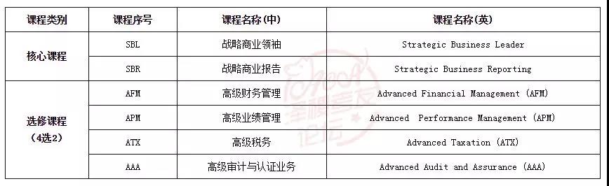 该阶段的课程相当于硕士阶段的课程难度,是对第一部分课程的引申和发展。该阶段课程引入了作为未来的高级会计师所必须的更高级的职业技能和知识技能。