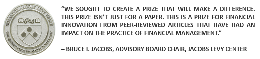 Wharton-Jacobs Levy Prize 也许听上去有些陌生,它是为了表彰 quantitative financial innovation(量化金融创新),由 Wharton 商学院的 Jacobs Levy Center 每两年颁发一次。与其他奖项不同,它十分看重研究的实践应用价值。