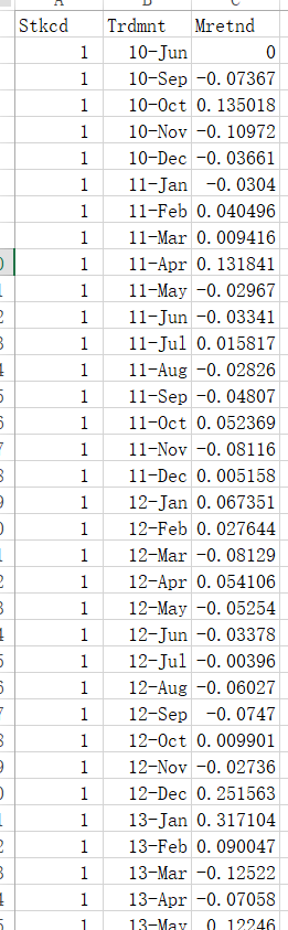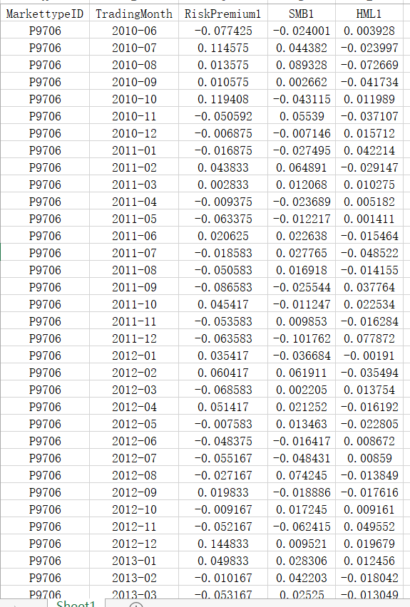 我从csmar上下载了5年的所有A股的月度收益率数据(格式如图1),然后我只想要有CSR评分的那600多家公司的月度收益率数据(格式如图2,名单是根据润灵环球公布的评分整理的),在此基础上再按月份匹配从csmar上下载的三因子数据(格式如图3),目的是算出这5年期间,这600多家公司的超额收益率。
