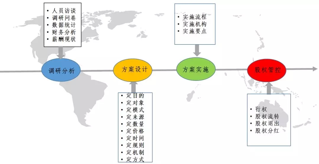 上述四个步骤就是一个完整的股权激励过程,现实操作中关于具体实施步骤可按实际情况予以删减,在实践操作中灵活处理。
