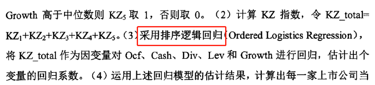 求助,我参考的文献中提到运用排序逻辑回归,但我对这个回归真的不了解,想要请问大家我应该使用什么语句?下图是我要回归的模型,其中KZ-TOTAL有1、2、3、4、5 共5个值,感谢大家!