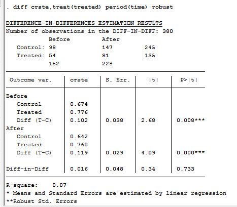 论文中用到,刚开始学习did,stata出来的结果交叉项系数不显著,这是不是数据的原因,不显著代表政策没有显著影响吗?请教各位大佬了,谢谢!
