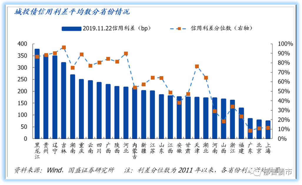 现在整个城投的平均利差,已经处于较低历史分位数。所以要挑选收益率还不错的标的,可能需要把各省的利差从高到低排,越高的被压缩空间越大。但换一个角度,当前利差还处高位的省份,往往市场之前态度比较规避。因而应该如何精挑细选?