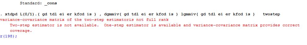 运行stata时,做两阶段系统广义矩阵时,或者是一阶差分两步法时,会出现上述文字。我有5个解释变量,分别是开放程度,能源强度,环境规制,产业结构和技术创新水平,有没有大神帮忙解释一下。