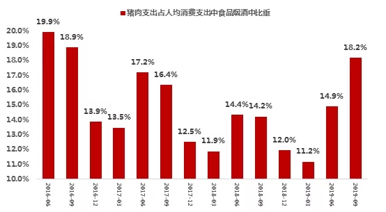 如今年猪肉支出在人均食品烟酒消费支出中的占比,比2016年那轮猪价上涨时还低,尽管猪价涨幅远超2016年。其背后的逻辑,就是消费升级。