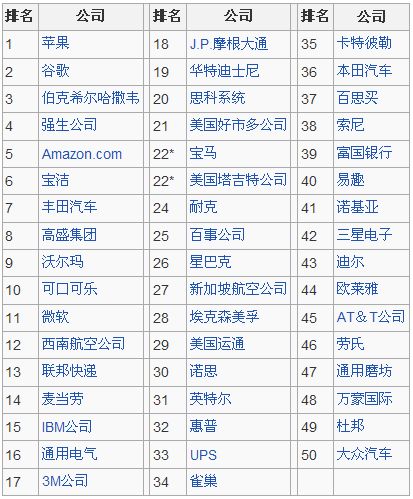 在整个排行榜当中,排名前五位的依次是苹果、谷歌、伯克希尔·哈撒韦(Berkshire Hathaway)、强生以及亚马逊。