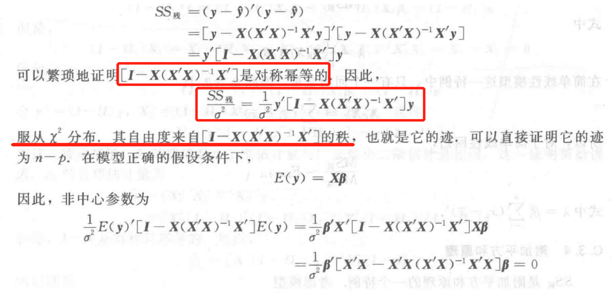请教线性回归中RSS(残差平方和)有关的分布推导
