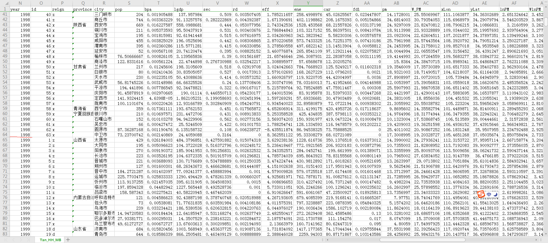 vnames=strvcat('lnPM','lgpop','lgbpa','lglgdp','lglgdpq2','lgsec','lgrd','lgeff','lgene','lgcar','lgfdi','lgpm');