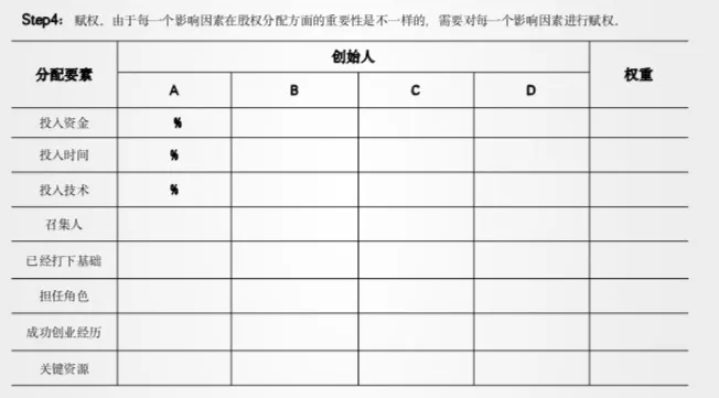 这样的话,所有股权的比例的分配是在同样的基础上予以计算的大家都会与认可。也基本不会对股权的比例后续发生质疑,因为这是数据模型得出的结果。其中商定影响因素和对各影响因素赋予一个股权比例是最为核心的要点,需要对行业有充分的认识和公示,能够确认对公司未来战略中极为重要的关键因素,并正确区分其重要性。例如高科技公司以技术和核心,技术开发人员或者技术运营人员的股权比例低于30%或者40%就是一件极其不正常的事,就应当引起特别关注。