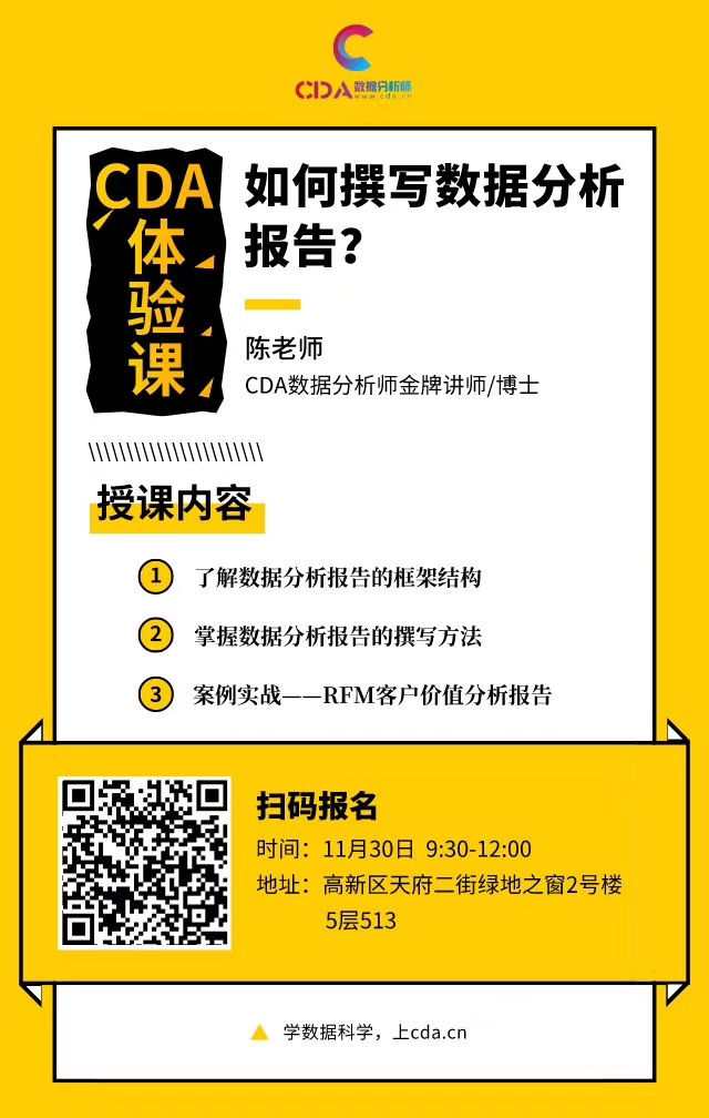 主题:CDA体验课——如何撰写数据分析报告?