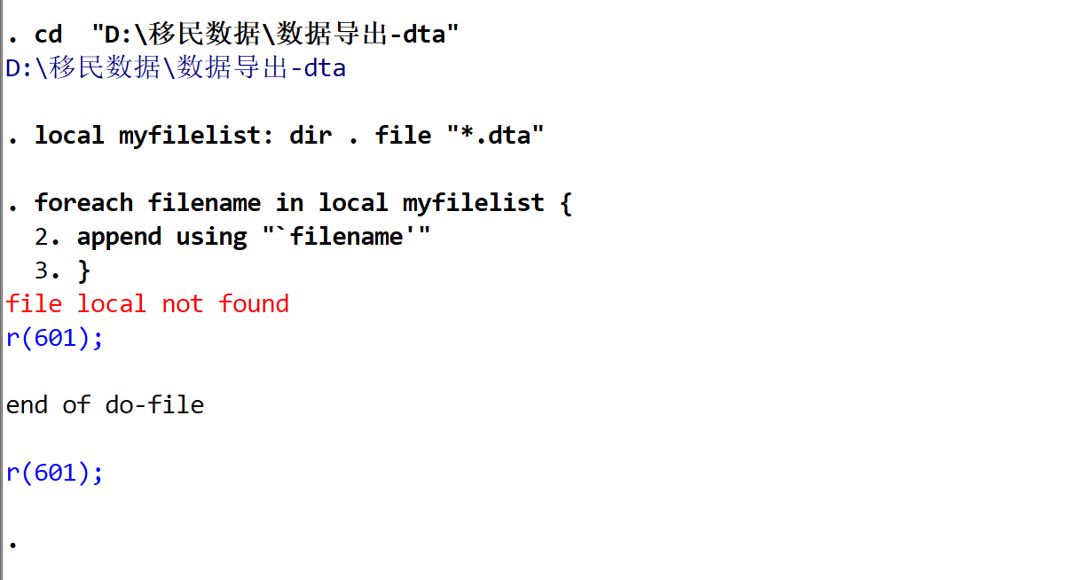 用Stata进行多个dta文件的纵向追加append时,显示以下错误,求教路过的各位老师!谢谢!
