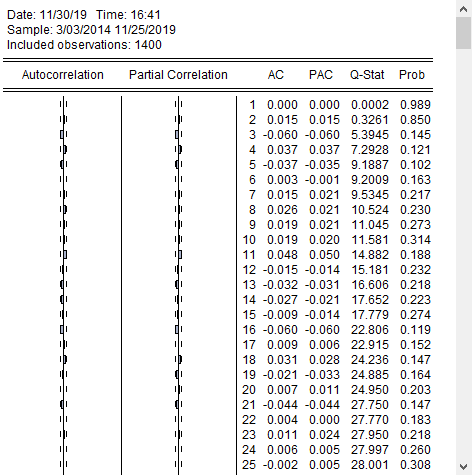 我观察的对象是收益率,在对收益率进行的自相关检验结果如下,这是不是不相关?还是说我的步骤有问题?具体应该怎么做?我应该是用ar还是ma还是说arma模型?