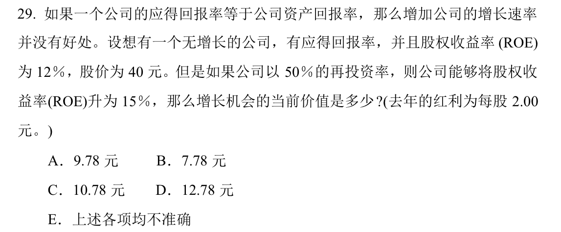金融学问题 证券分析 股票价值评估问题 求解