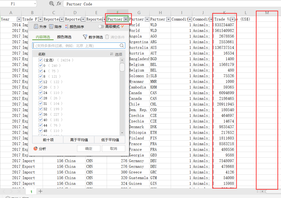 我想对图中partner那一栏中,筛选不同的值,不同的值对应的后边 trade value 那一栏中的所有值求和,请问大神如何处理?