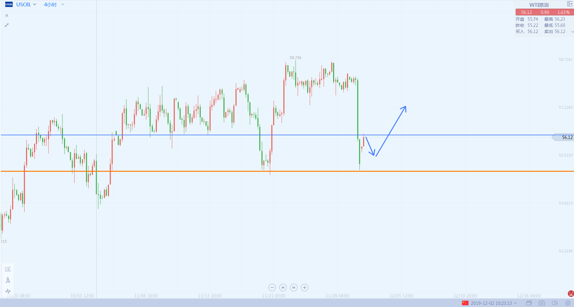 2:原油回撤55.5做多,损55,目标看向56.6。