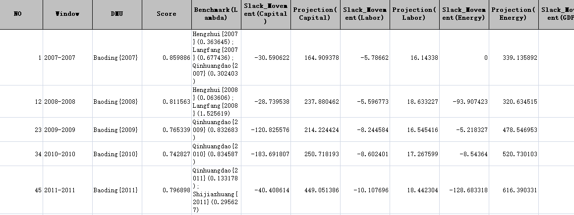 关于用DEA计算能源效率的问题