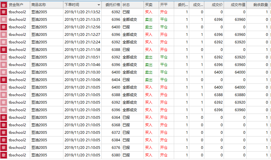 这里我们以豆油2005合约为例,4元一格,平仓的频率看起来还挺不错。