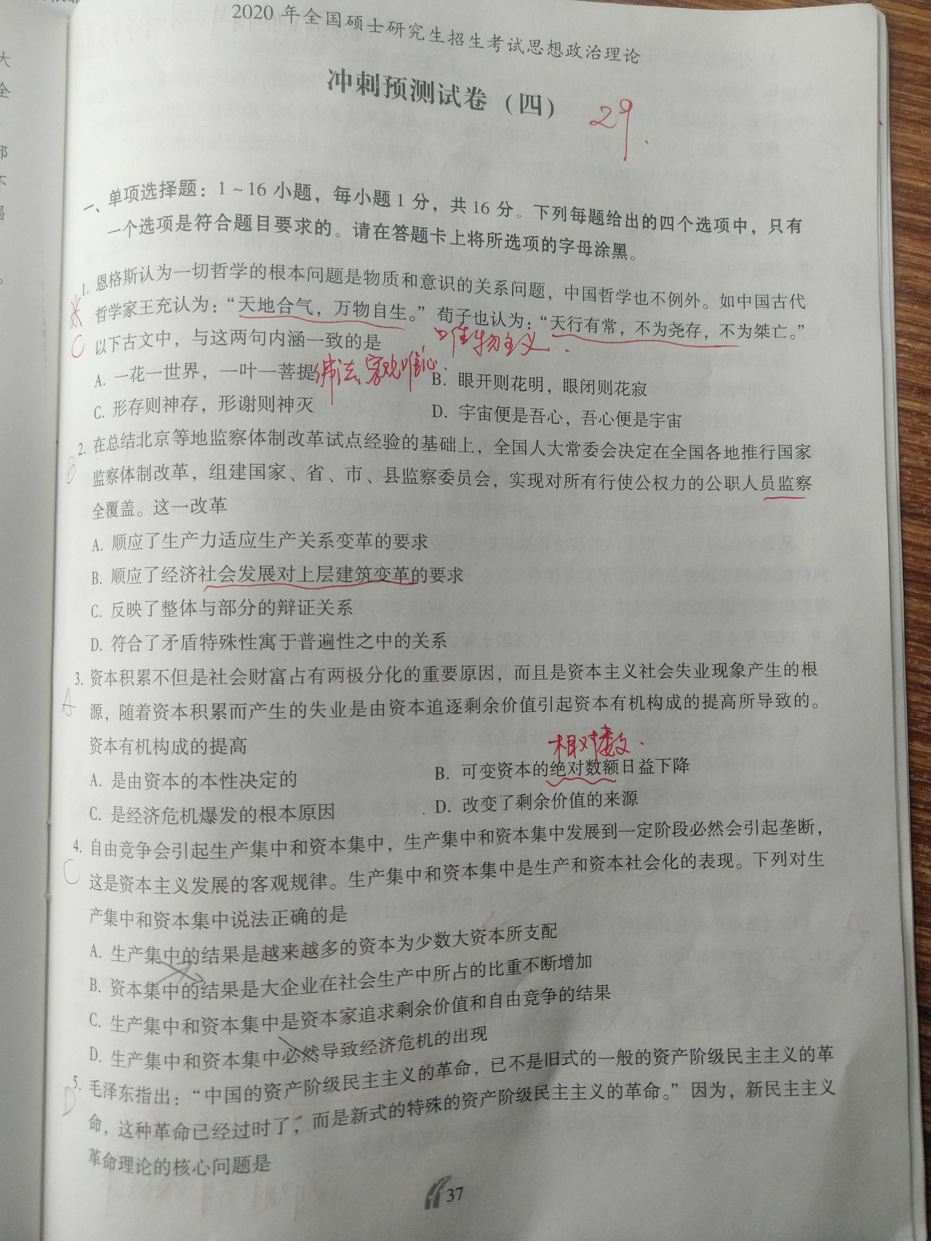 腿姐陆寓丰冲刺预测卷《第四套》,得分29。