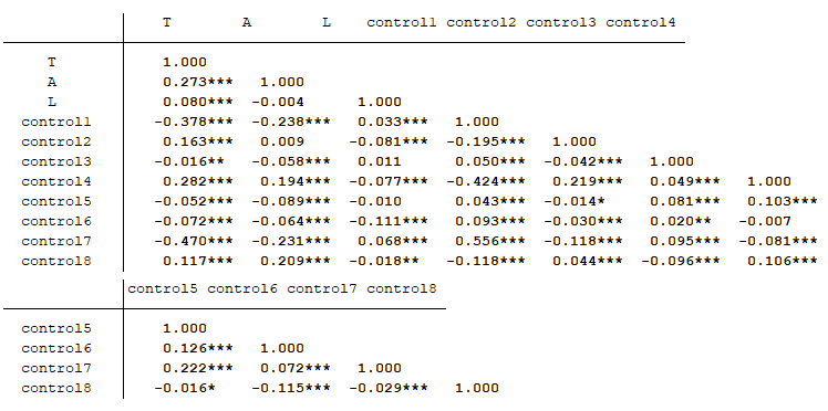 (1)L对A,A=α+β1L+β2Controlvar+e