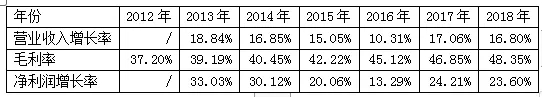 2012年营业收入为70亿的级别,到2018年已到达170亿的级别,年增长率均保持在10%以上,平均年增长率为15%。与营业收入增长相对应的是,毛利率也不断提高。2012至2018年的七年间,海天味业的营业收入增长率2.4倍,同时毛利率提高了11个点,持续攀升的毛利率反映了公司管理出色的成本管控能力。由此导致的后果就是,2012-2018年年均24%的归母净利润增长。