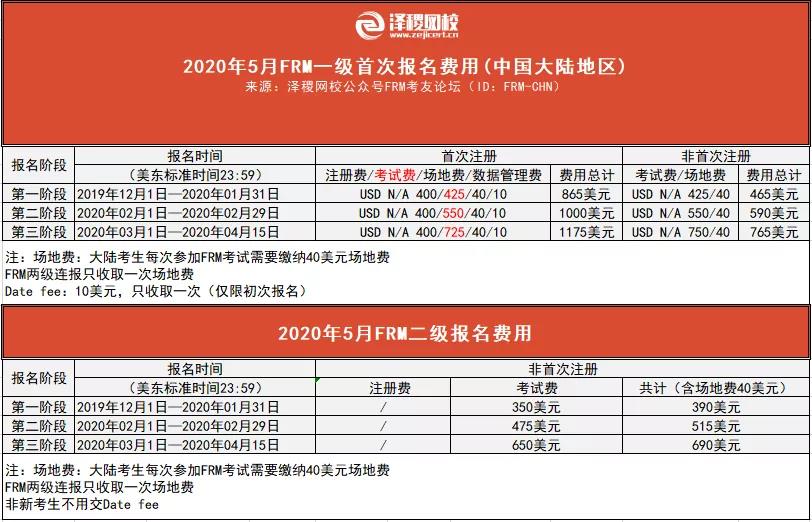 2020年FRM一级的考试费用将会增加75刀,其中考试费用包含了P1的电子英文教材费用。
