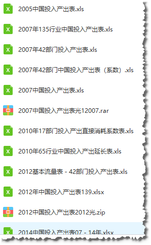 中国投入产出数据:1987-2014(文件大小70MB)