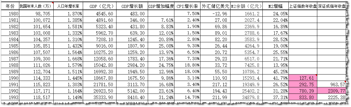 我国历年年未人口,年GDP,年平均CPI,M2余额,外汇等国家经济数据