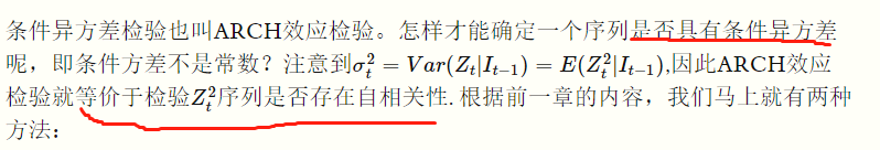 讲义中是这么讲的,但是我不理解为什么“序列是否具有条件异方差”等价于“Zt2是否存在自相关性”。这个要怎么解释呢?