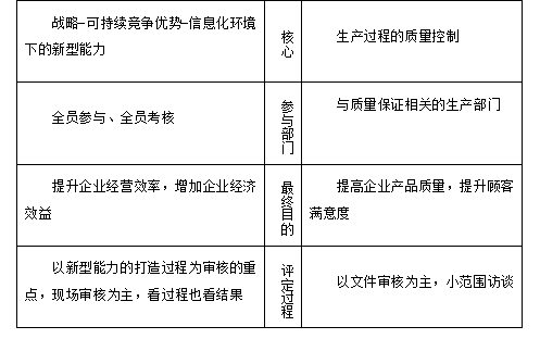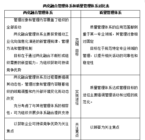 以两化融合管理体系和质量管理体系为例做一对比,如下表所示。