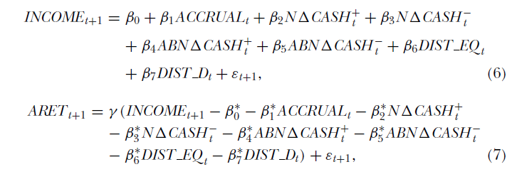 在读2014年的一篇文章:Changes in Cash: Persistence and Pricing Implications,里面模型(6)和(7)