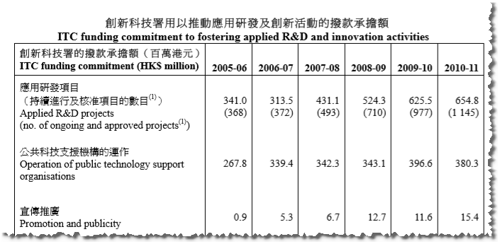 香港科技创新数据活动统计:2005-2016,包括政府的投入、民间的投入资金的数量,用途等,科技成果、专利等。