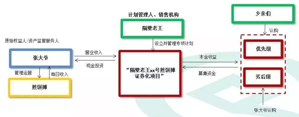 简单用一个图说明这个煎饼摊证券化的交易结构: