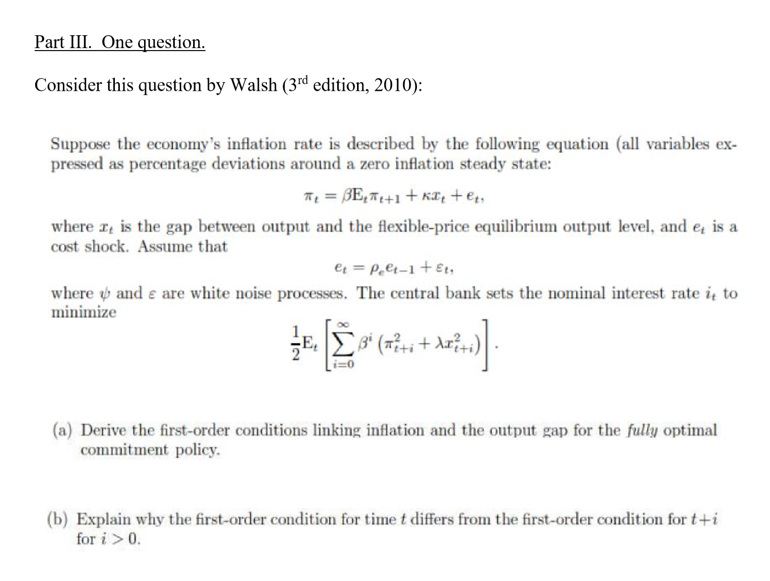 跪求Walsh Monetary Theory and Policy 3e 这几题答案,酬谢
