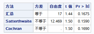 SAS是怎么计算出不等方差t'检验的Cochran-Cox检验的p值?