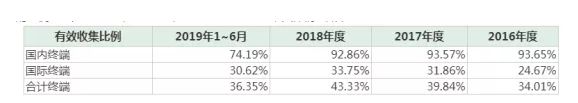 注:受限于报告期发行人国际终端分布众多,涉及100多个国际及地区,以及欧盟、澳大利亚等国际及地区数据保护法的限制,国际终端有效收集比例相对有限。