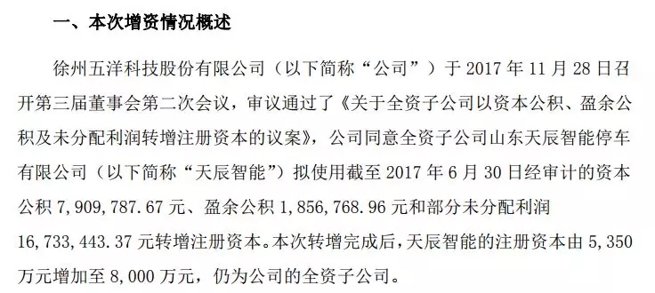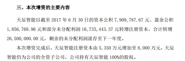 这其实很好玩啊。增资前,子公司的注册资本是5350万,把合计2650万的资本公积、盈余公积、未分利润打包揉到注册资本里,使注册资本增加至8000万。