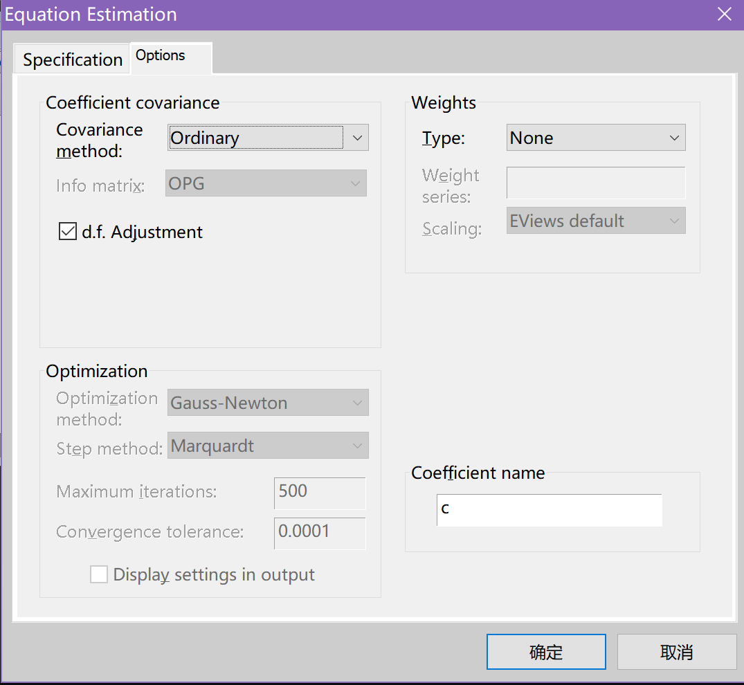 老师讲不知道异方差具体形式的时候采用怀特稳健标准差的方法,但是eviews10.0如何实现呢?