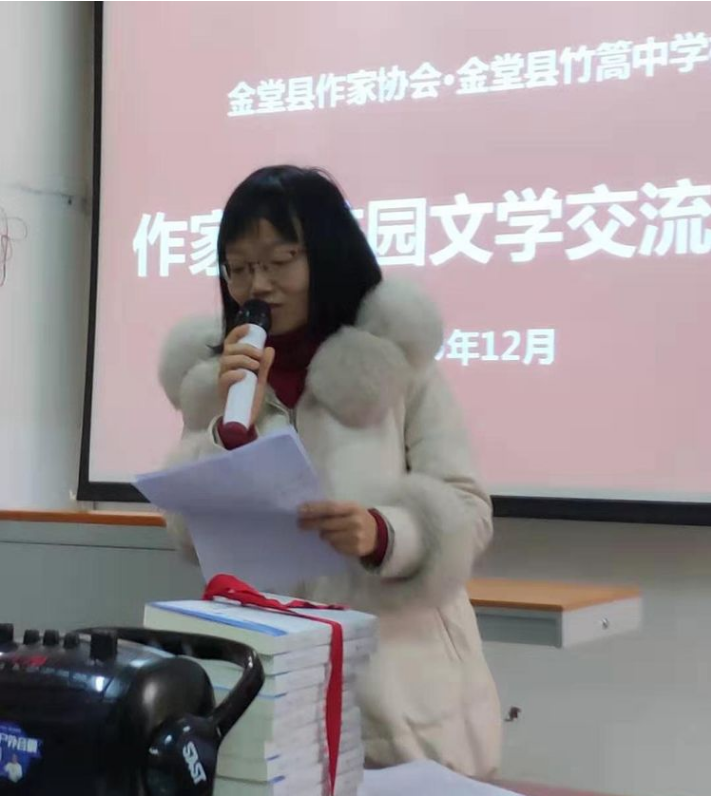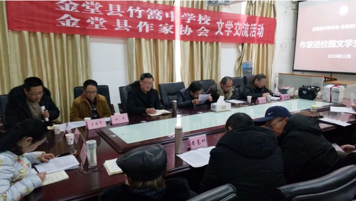2019年12月12日,金堂县作家协会在竹篙中学举办了一场主题为“作家进校园,感受竹中教育风采”的文学交流活动。李正熟主席、孙成君、林翼副主席,刘元兵秘书长等20名作家参加活动。