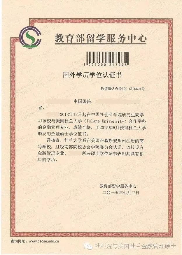 5、颁发国家承认的学历学位双证,可用于考公务员、晋升职称、继续读博士、申请积分落户等等(美国杜兰大学金融硕士学位、中国留学生服务中心学历学位认证);