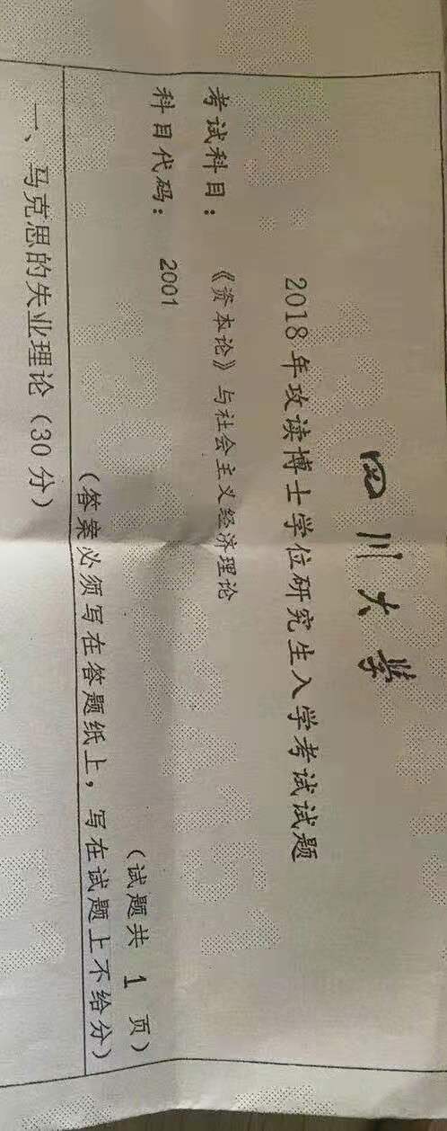 四川大学考博真题,经济学+英语,有偿服务。