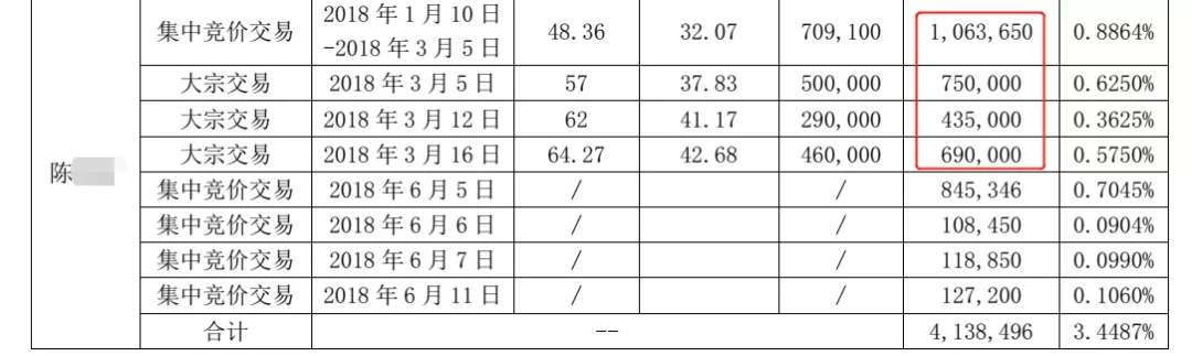 2018年6月20日,公司发布《关于持股5%以上股东减持计划实施完成的公告》,其于2018年1月10日至6月11日期间,通过集中竞价和大宗交易方式累计减持公司股份4,138,496股,减持比例3.4487%(即权益分派前后均有减持)。与预先披露的减持计划不一致,减持明细情况如下: