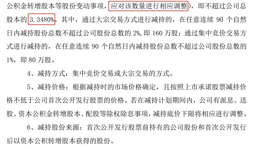根据上述减持计划:“若此期间公司有送股、资本公积金转增股本等股份变动事项,应对该数量进行相应调整”。